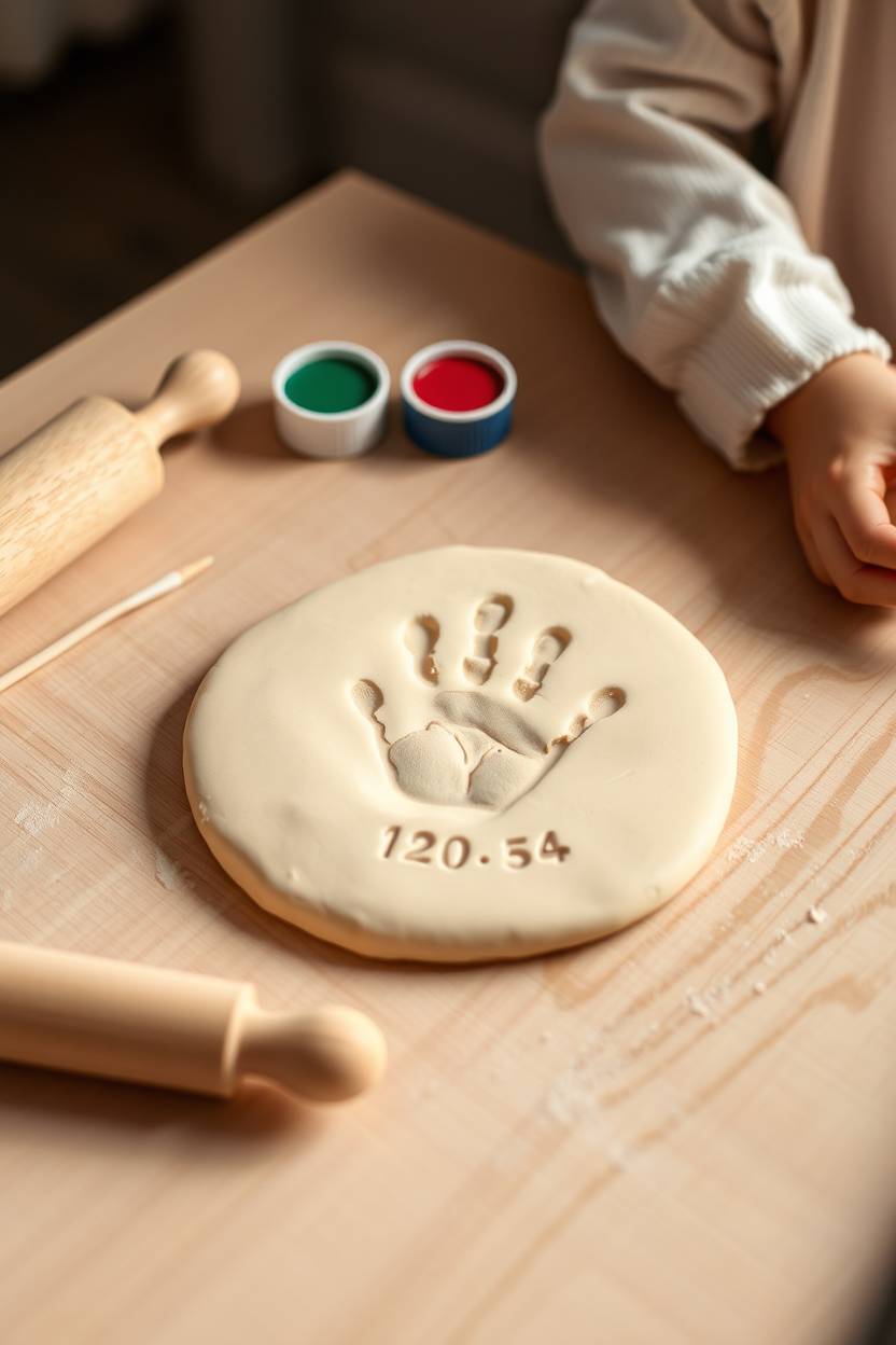 Honestly, these make the best gifts for grandparents or just something sweet to hang on the wall. You can write the child’s name and date with a toothpick before it dries, then paint it once it’s hardened. I always suggest sealing it with a varnish so it lasts longer. Be warned: once you start, you’ll want to make a new one every year.