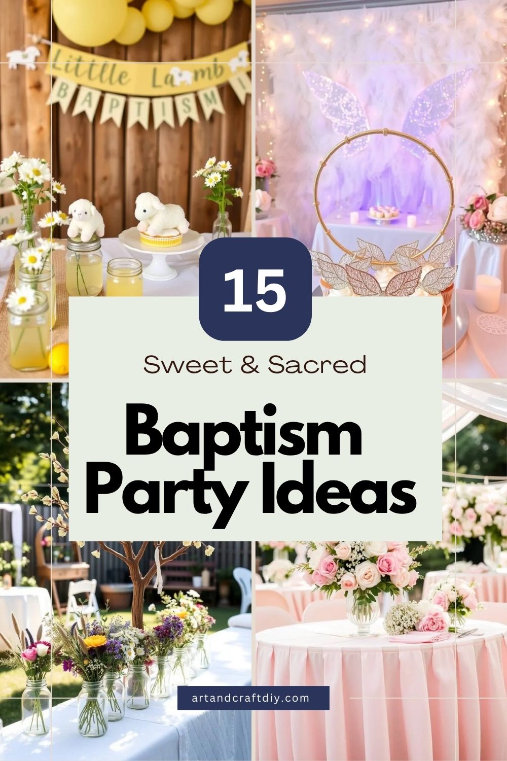 Popular Baptism Party Ideas include “Heaven Sent,” “Little Lamb,” “Angel Wings,” and classic white and gold. Choose a theme that reflects your faith and style.