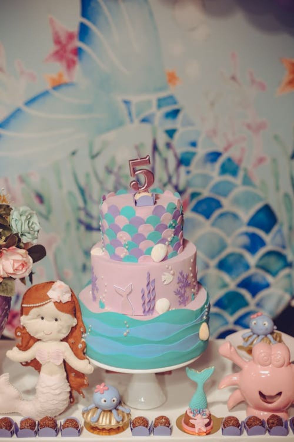 What I do is use a spoon or spatula to create wave-like textures in the frosting. Add edible pearls, shells, or even crushed biscuits for a sandy effect. Then place a mermaid Barbie on top or slightly into the cake. It looks detailed, but honestly, it’s pretty simple.