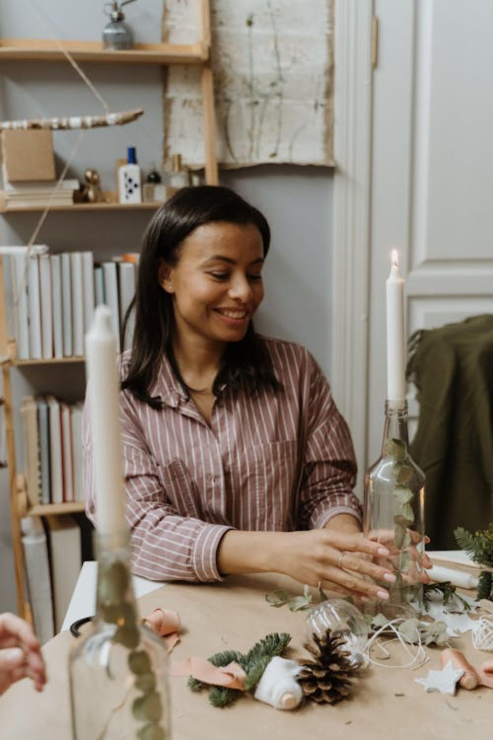 In my opinion, darker glass bottles work best—they make the candlelight glow warmer. I sometimes tie lace or burlap around the bottom for a rustic vibe. Just remember to trim the candle wick and never leave it unattended. These bottles turn any dinner into a cozy candlelit scene straight out of a Christmas movie.