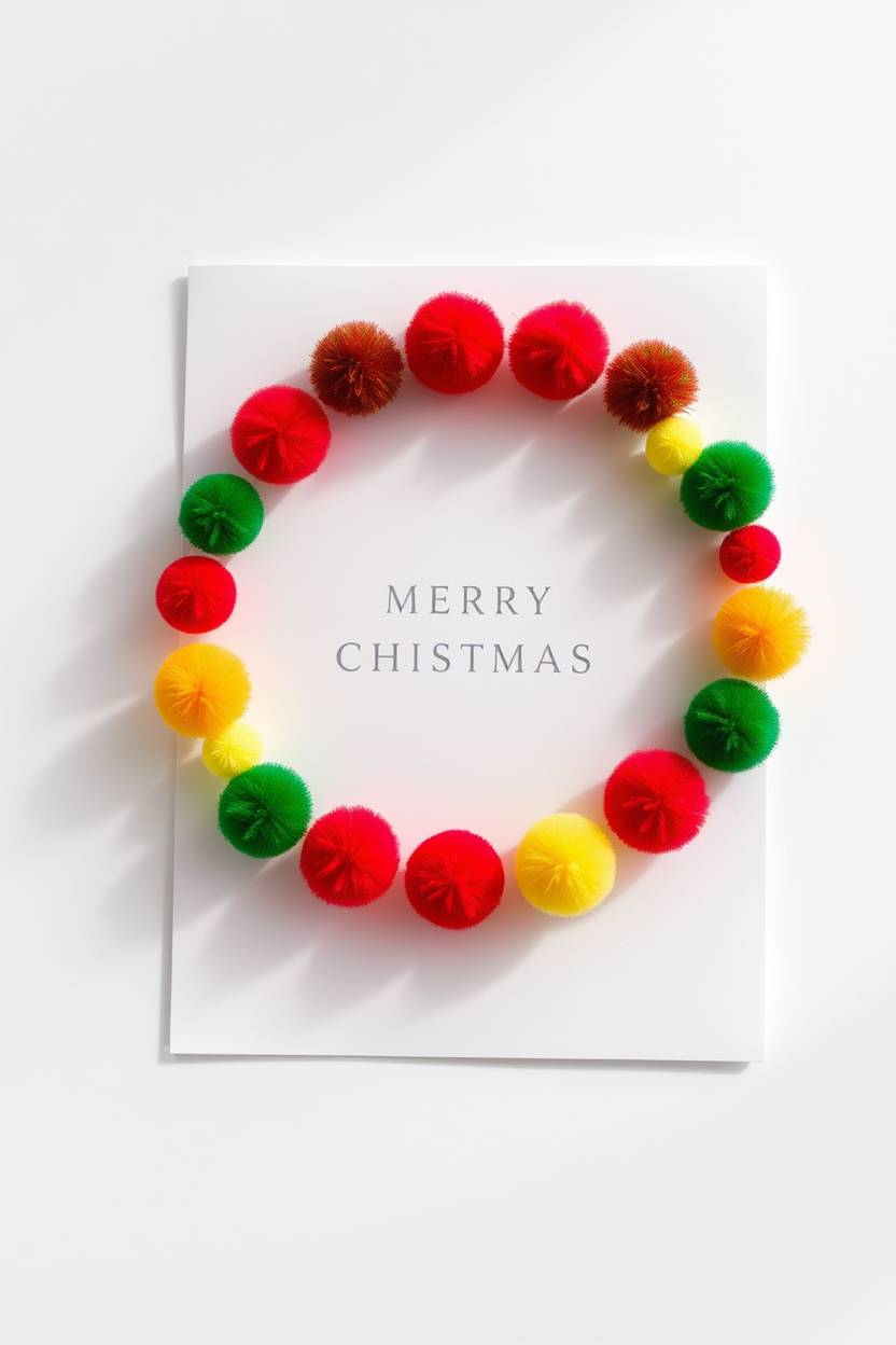 Pom-pom wreath cards are honestly adorable and surprisingly simple. I usually help kids glue small red and green pom-poms in a circle to make a mini wreath on a card. My niece once decided to make a rainbow pom-pom wreath instead, and honestly, it looked festive in its own quirky way.