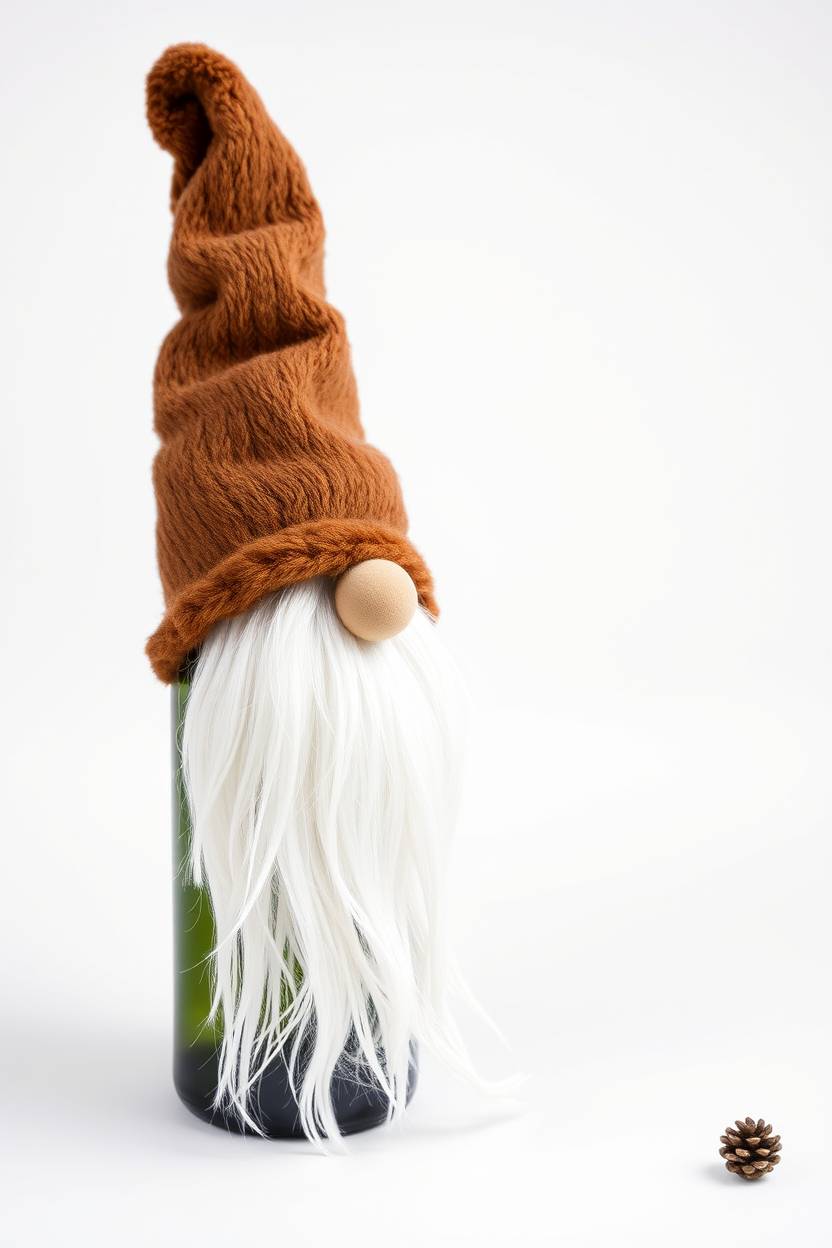 Wine bottle gnome covers are hilarious and festive, honestly. I first tried this on a fancy wine bottle for a friend’s party, and everyone laughed—they’re basically a gnome that doubles as decor. I usually use felt or knit fabric to make the hat and glue it around the neck of the bottle, adding a little beard with yarn.