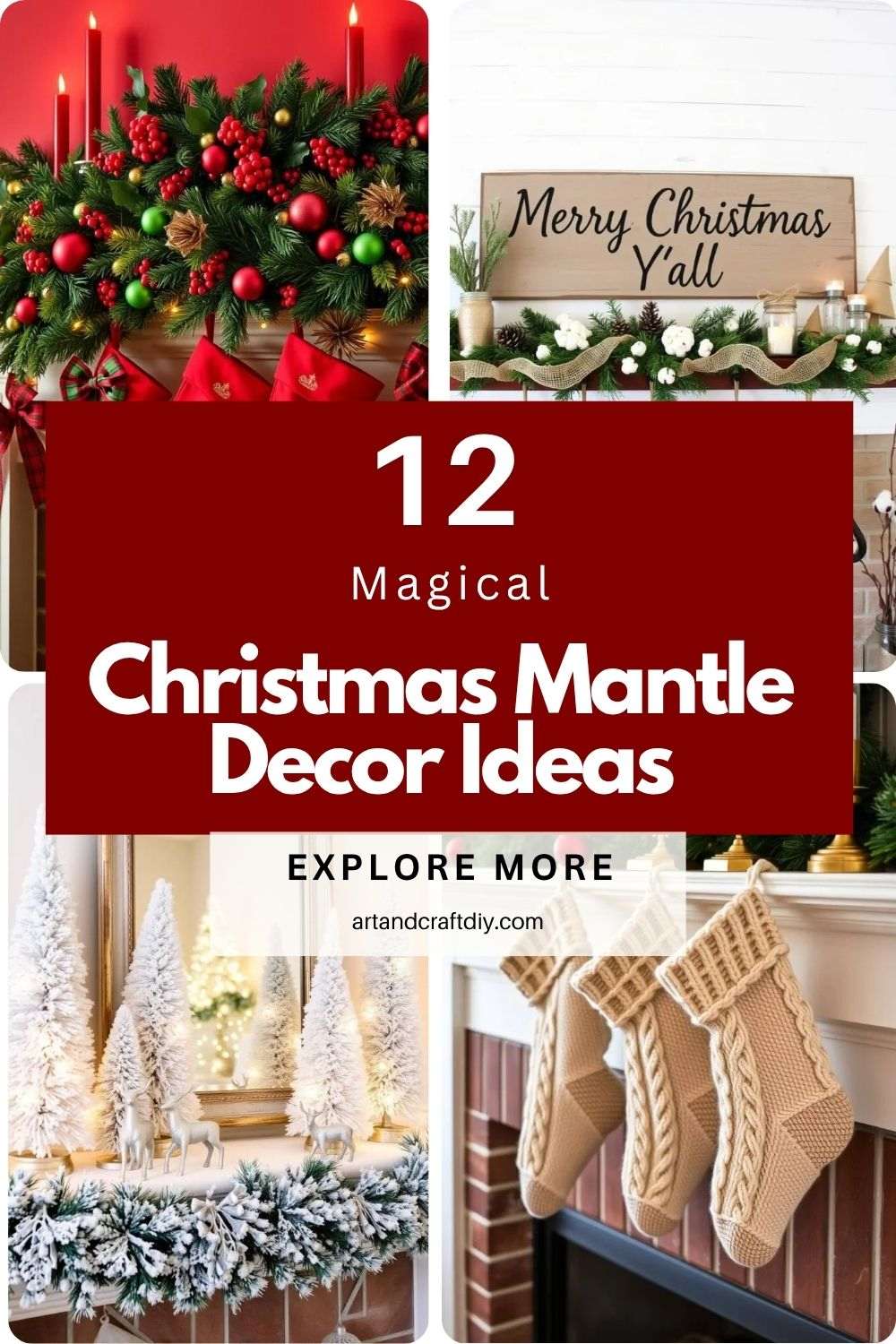 Popular Christmas Mantle Decor Ideas include traditional red and green, rustic farmhouse, snowy winter wonderland, minimalist white, whimsical candy-themed, vintage, and Scandinavian-style mantles.