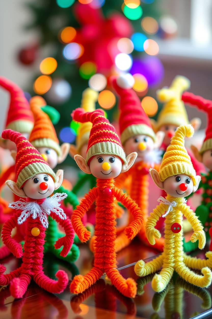 Elves are honestly so much fun. I usually twist a colored pipe cleaner into the body and legs, then add tiny bent pieces for arms and a pointy hat. To be fair, getting them to stand can be tricky, but I’ve found that bending the legs just right solves that. Kids especially love making these because you can get really silly with hats and shoes.