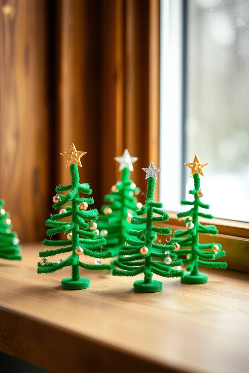 Mini Christmas trees are my absolute favorite. I love taking a green pipe cleaner and twisting it into a cone shape, then wrapping smaller pieces around to make branches. Honestly, they look so cute lined up on a windowsill or desk. I usually stick a little star or bead at the top to make it feel complete.