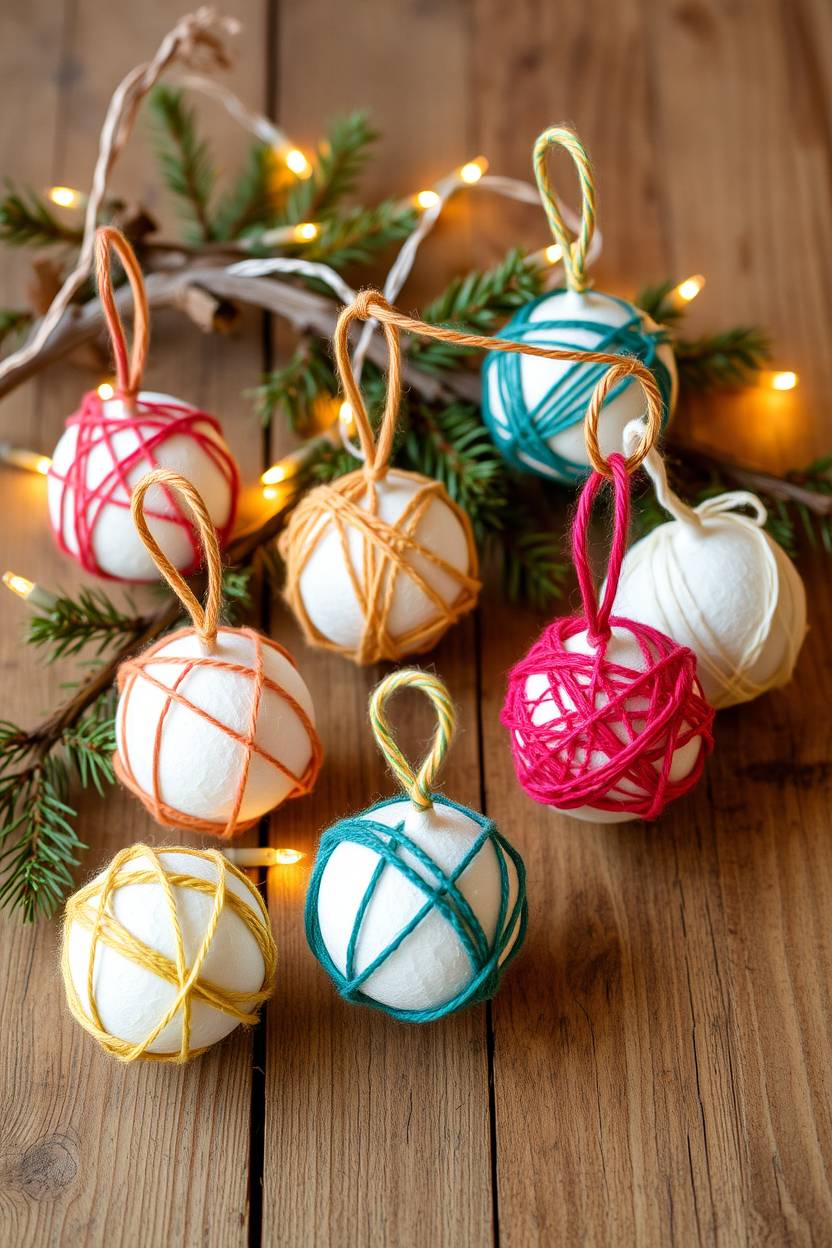 There’s something so homey about yarn ball ornaments. They remind me of cozy knitting nights, even if I rarely finish my projects. I just wrap yarn around small foam balls, glue the ends down, and tie a loop at the top to hang.