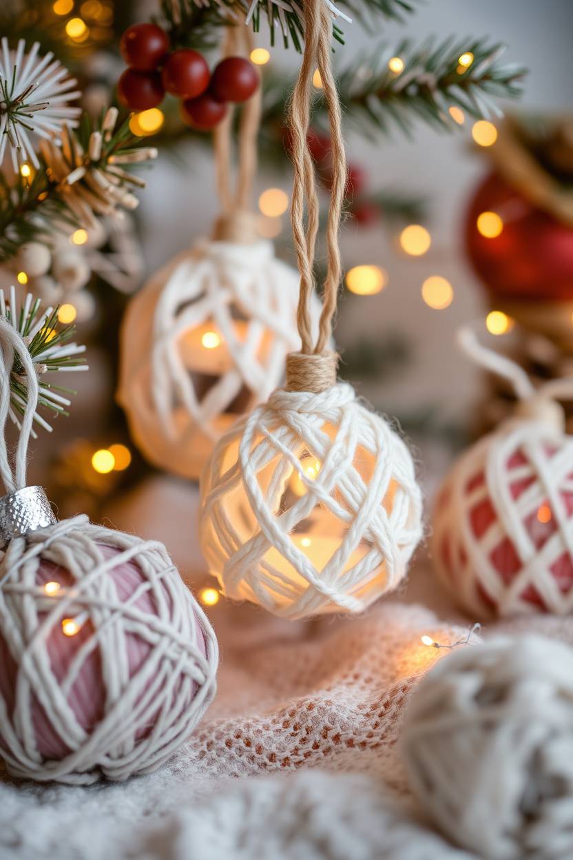 Use yarn ornaments, pom-poms, or mini garlands to decorate your tree with a cozy, handmade touch. -