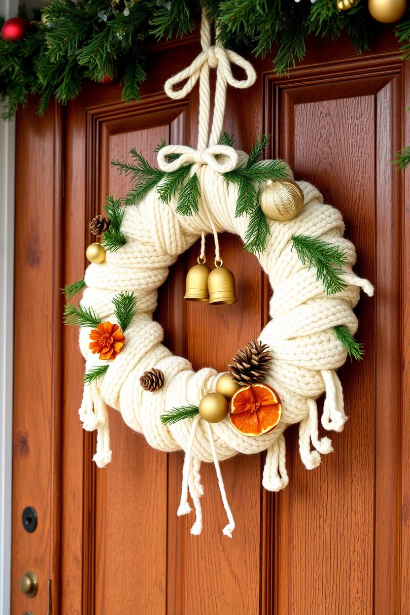 Hang yarn wreaths, stars, or candy canes on doors and windows to welcome guests with cheerful vibes. -