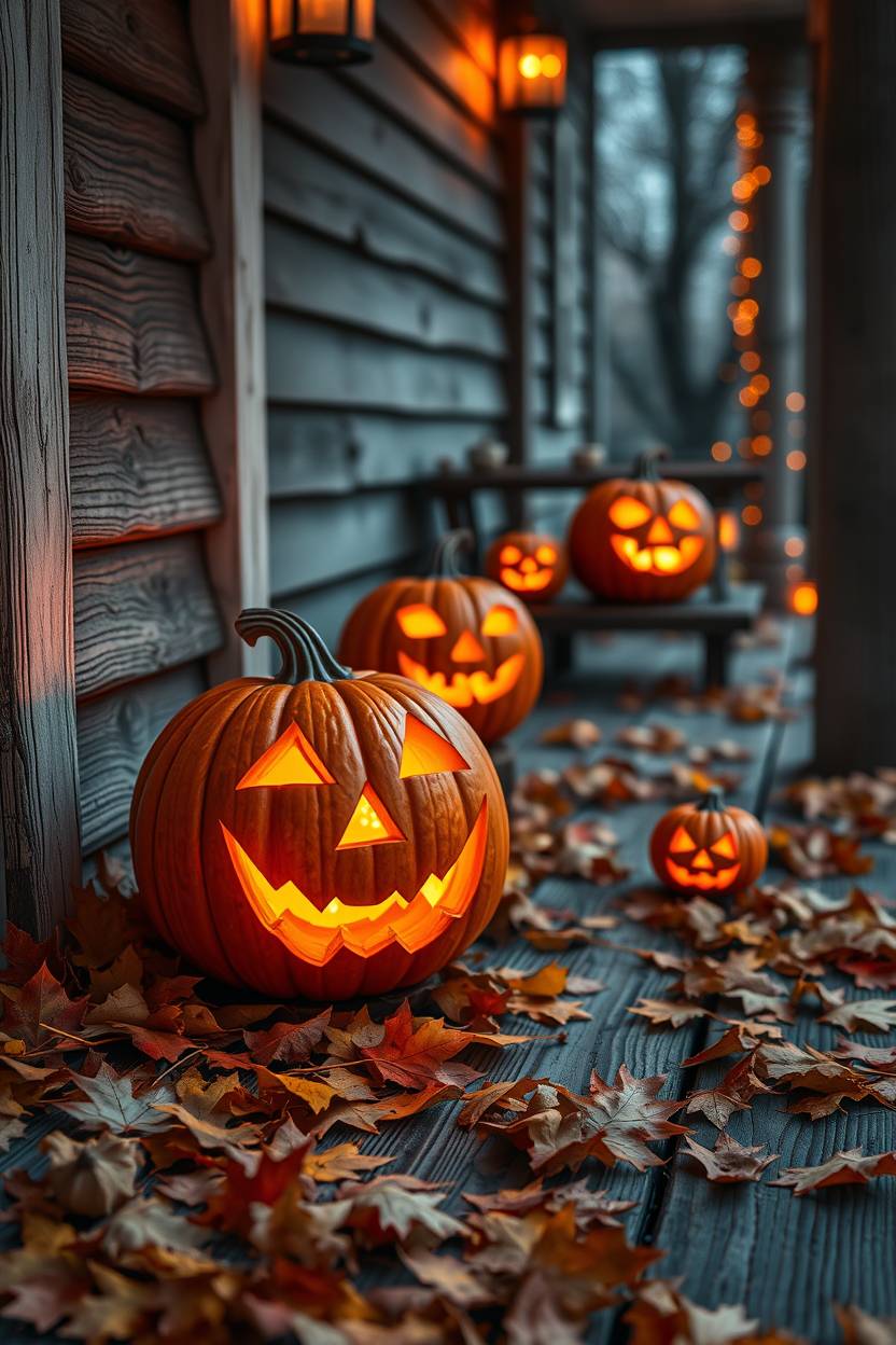 Glow-in-the-dark pumpkins are honestly my favorite when I want a spooky vibe without fire. I’ve found that painting pumpkins with glow paint gives them a ghostly, magical look at night. Honestly, it’s so fun to turn off the lights and watch them glow eerily in corners.