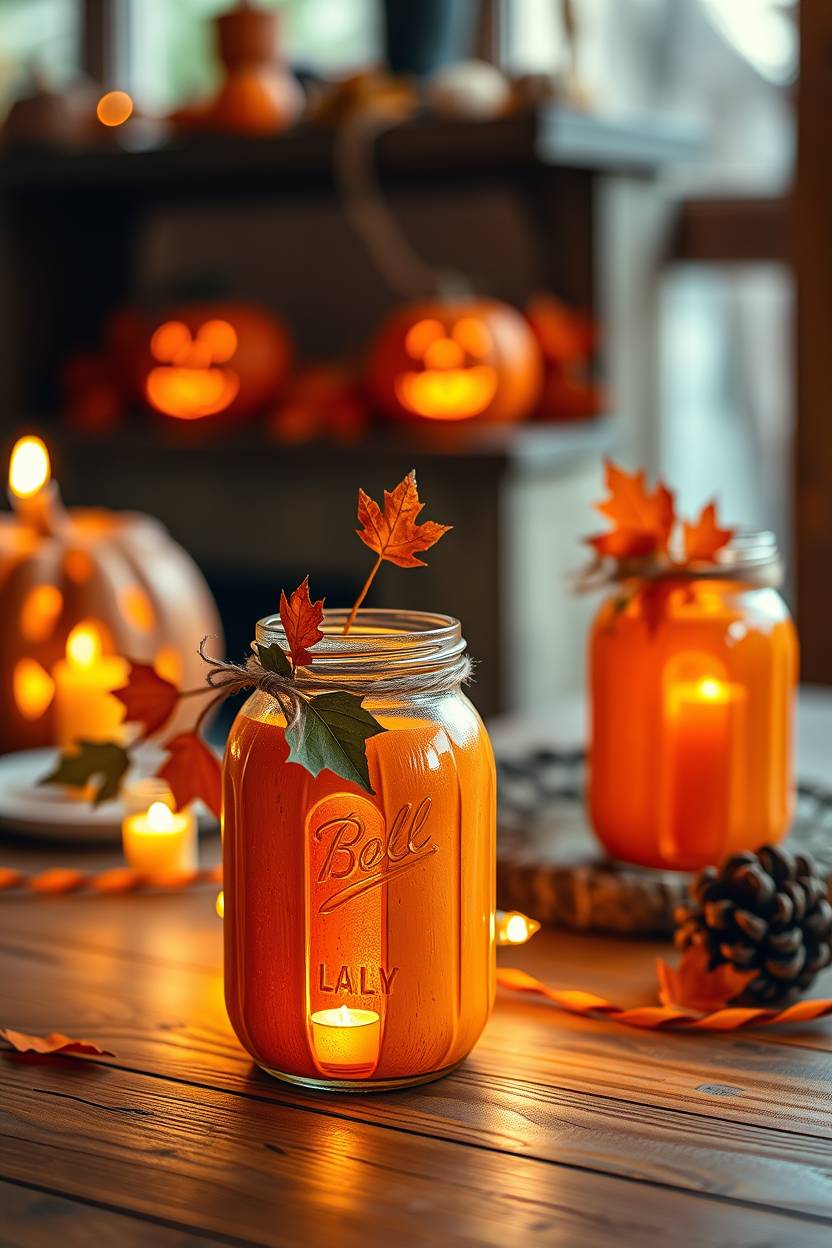 Honestly, pumpkin mason jar lanterns are such a fun twist on classic pumpkins. I’ve found that painting jars like pumpkins and adding a candle inside gives this cozy, homemade vibe. Honestly, the glow through the jar looks so warm and inviting on a porch or table.