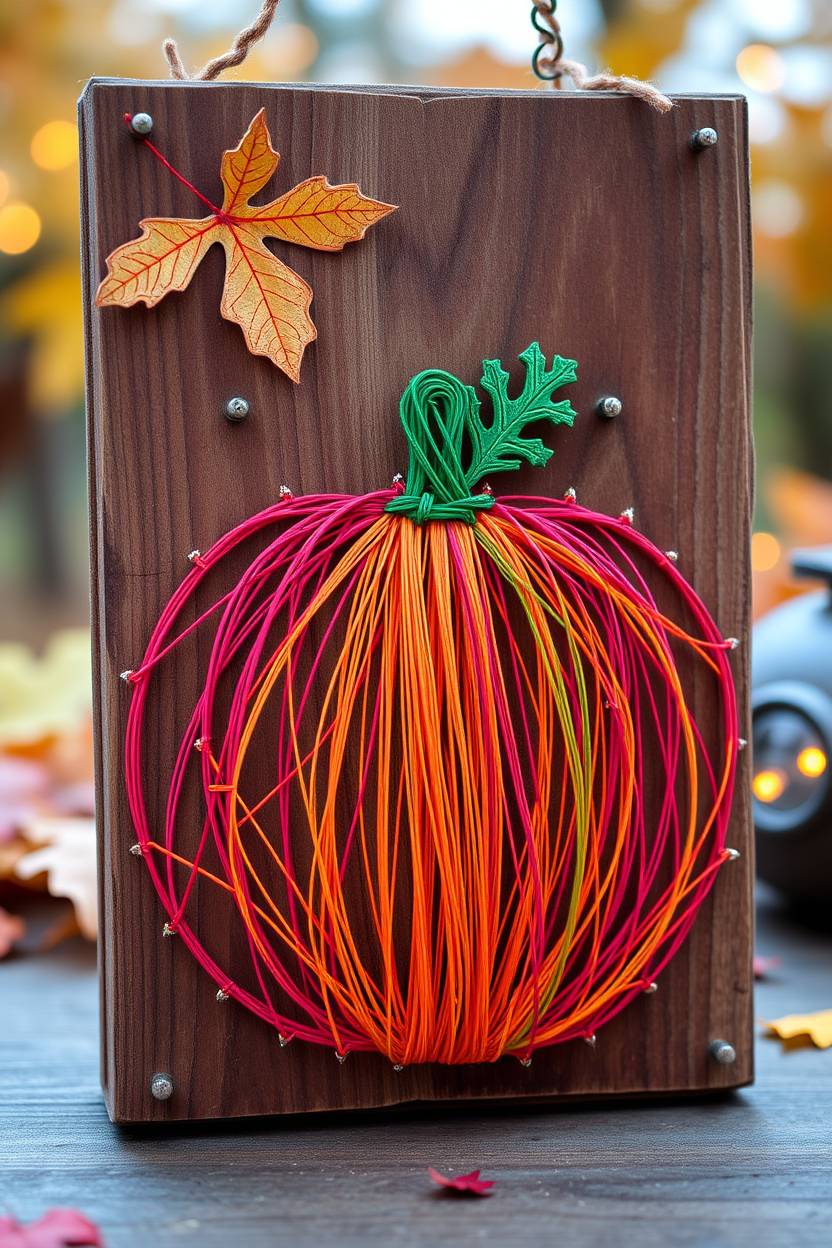 Honestly, pumpkin string art sounds fancy but is way more fun than it seems. I’ve found that hammering nails into a board and wrapping string around to form a pumpkin shape is surprisingly relaxing. Honestly, it’s a bit like painting with thread—it’s satisfying to see the design take shape.