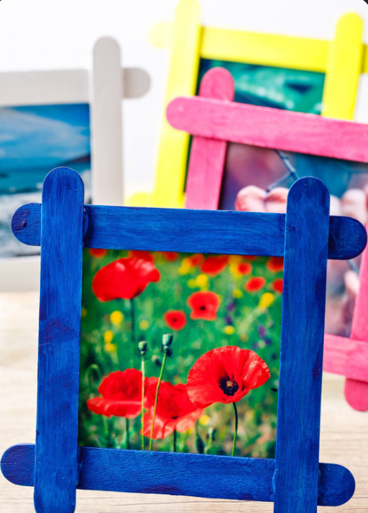 Popsicle stick frames take me back to school craft classes where everything was glued crooked but still proudly displayed on the fridge. Even now, I make them when I’m in the mood for something playful. I love arranging the sticks in layers, painting them in bright colours, and decorating with beads or ribbons. It’s simple, but it feels nostalgic in the sweetest way.