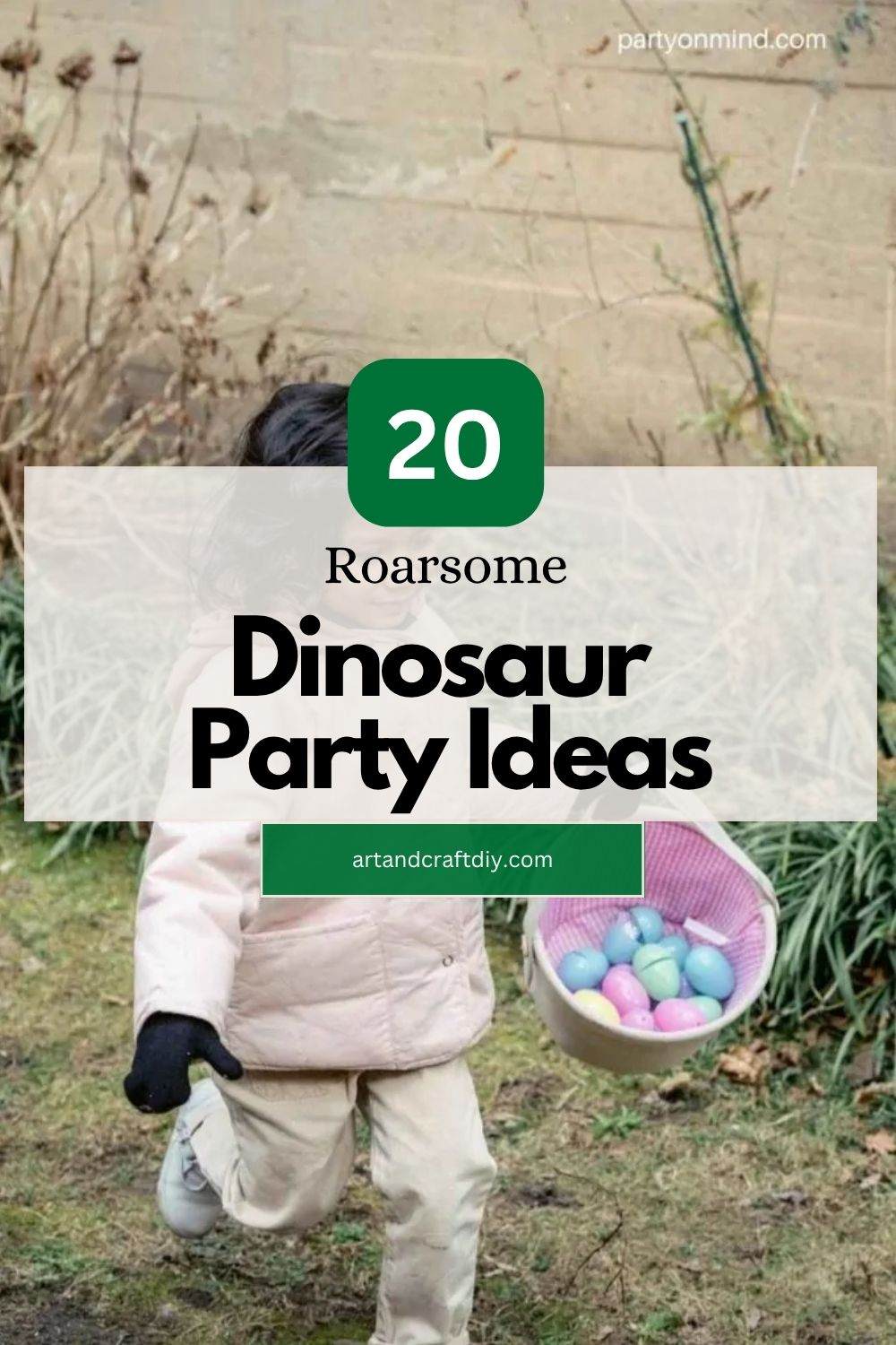 You can use paper cutouts of dinosaurs, green streamers for jungle vines, dino footprints on the floor, and balloons in earthy tones like green and brown.