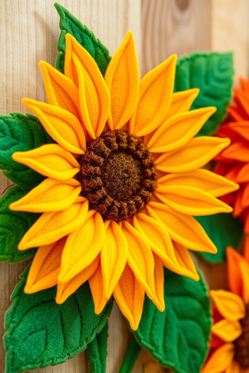 One year, I made a cluster of three in different sizes and hung them in my kitchen, and they made the whole space brighter. To be fair, felt sunflowers never wilt, which is a win in my book. Sometimes I even add a few felt leaves for extra detail. It’s one of those projects that looks impressive on the wall but is surprisingly simple to make. Every time I pass by mine, I get that happy autumn vibe.