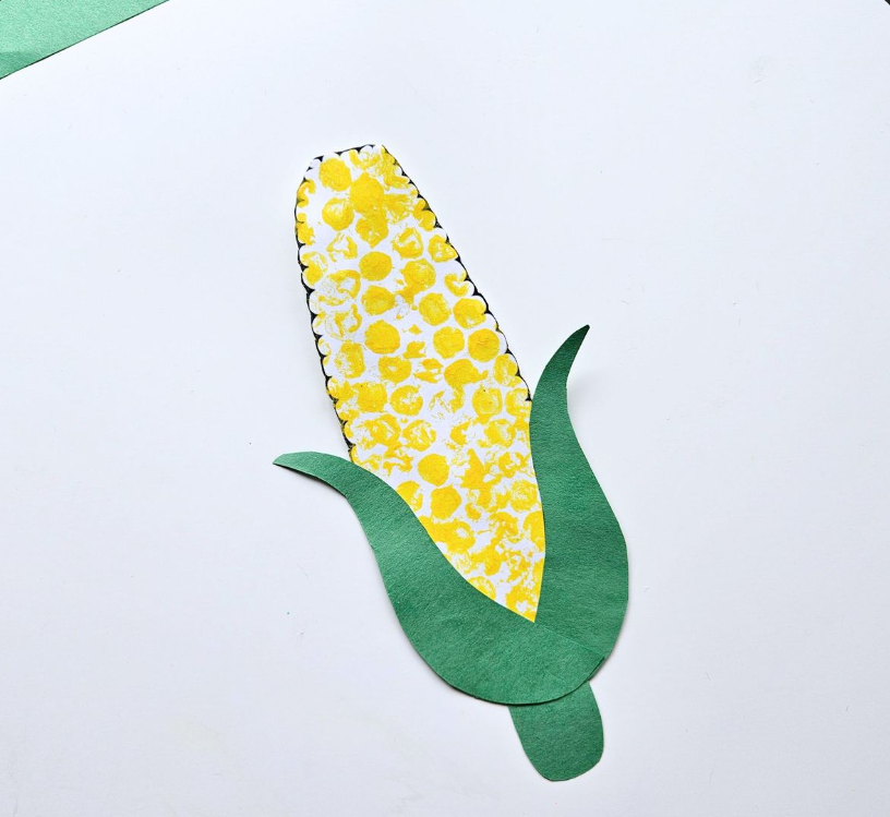 If you’ve never used bubble wrap for crafts, you’re missing out. I cut a piece, dab it with yellow paint, and let my toddler press it down on green paper—it makes the most perfect corn cob pattern. I didn’t believe it at first until we tried, and now it’s one of my favorites.