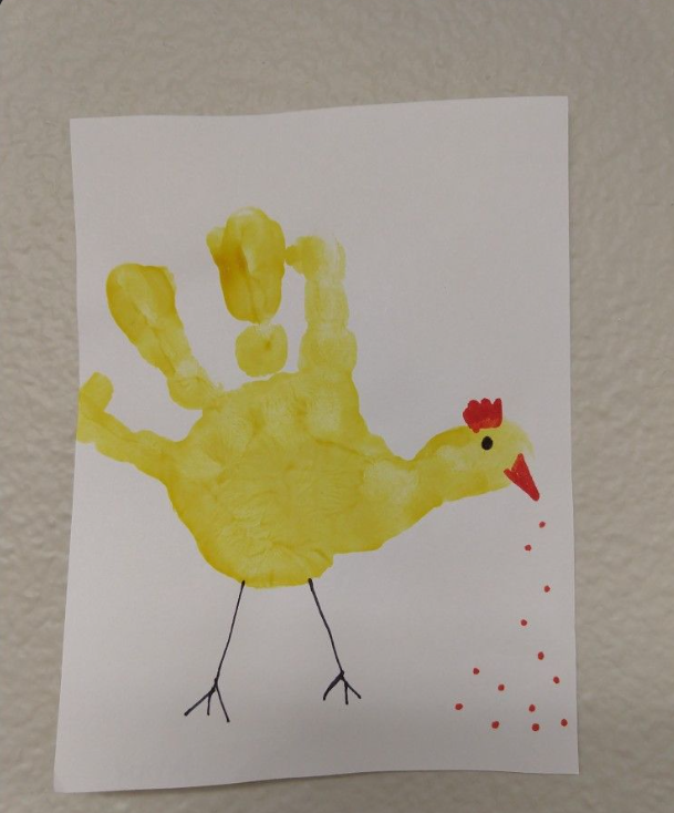 In my opinion, this is one of those crafts that makes a perfect keepsake too. I love looking back and seeing how small their hands used to be. You can let your toddler glue on a tiny triangle beak and some googly eyes to bring it to life. Honestly, the funniest part was when my child insisted the chicken needed “shoes,” so we cut little boots out of paper and stuck them on. Totally unnecessary, but it made the craft unforgettable.