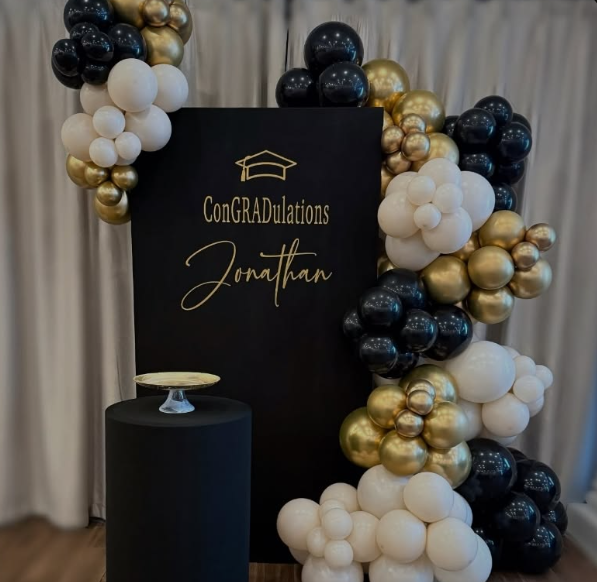 I’ve always felt that adding a personal touch makes everything better. That’s why I love including the graduate’s name and year in the backdrop. It instantly makes the setup feel special and not just generic party decor.
