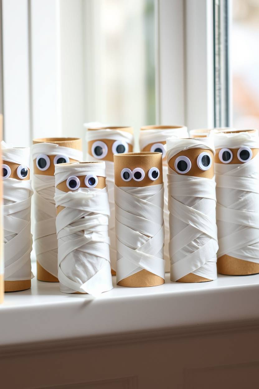 I swear toilet paper roll mummies are the craft I’ve repeated most over the years. They’re quick, cute, and require almost nothing—empty rolls, white tissue or gauze, googly eyes, and glue. I once made about twenty of them for a school craft fair table, and kids were obsessed. The best part? They double as little treat holders if you stuff candy inside.