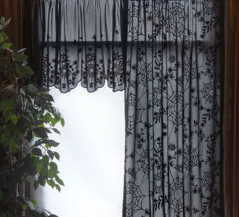 For dinners, I always throw down a dark, gothic-style table runner. It immediately makes the table look moody and dramatic. I’ve got this lace spiderweb one that I’ve been using for years, and it never fails to impress. Guests always touch it and go, “Where’d you get this?” which makes me feel like a pro decorator even though I’m not.