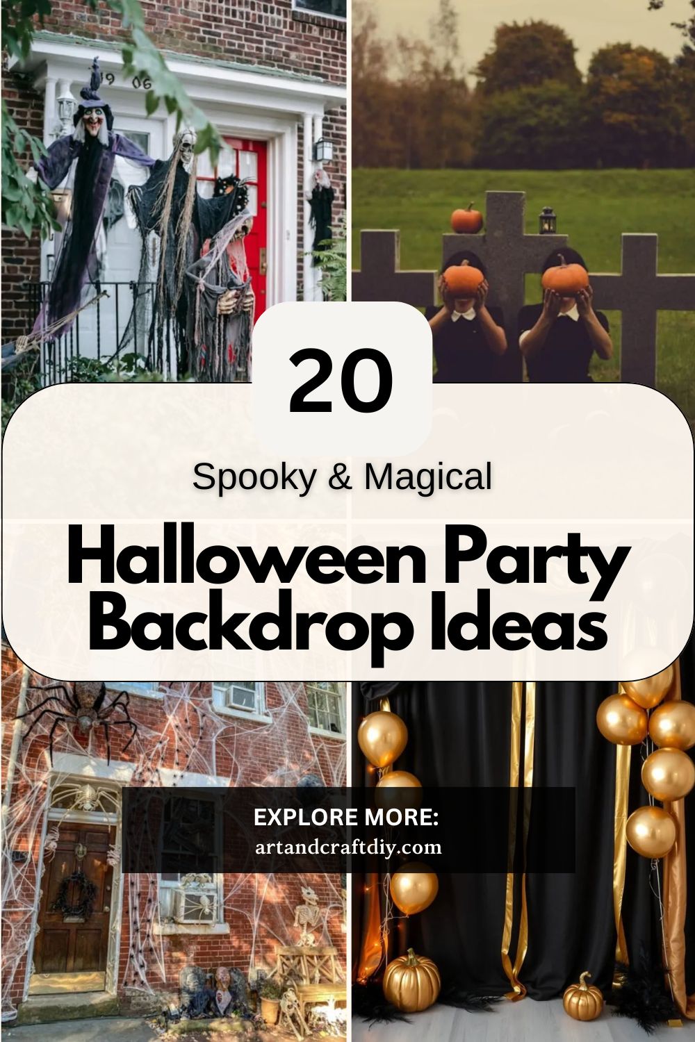 Add props like pumpkins, masks, or broomsticks: Small decorations in front of the backdrop make it more interesting and interactive for guests.