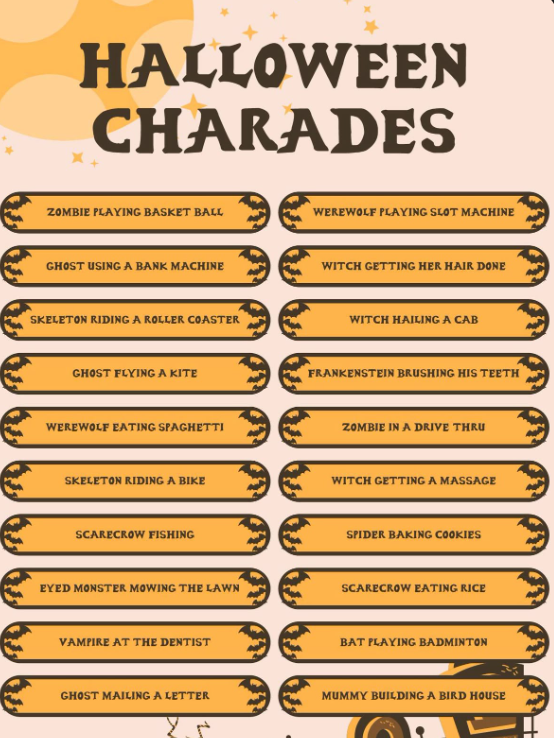 Add spooky energy to this classic guessing game. Halloween Charades gets guests acting out ghoulish words, movie titles, or creepy characters. It’s great for groups, laughs, and breaking the ice. You don’t need fancy supplies—just your imagination.