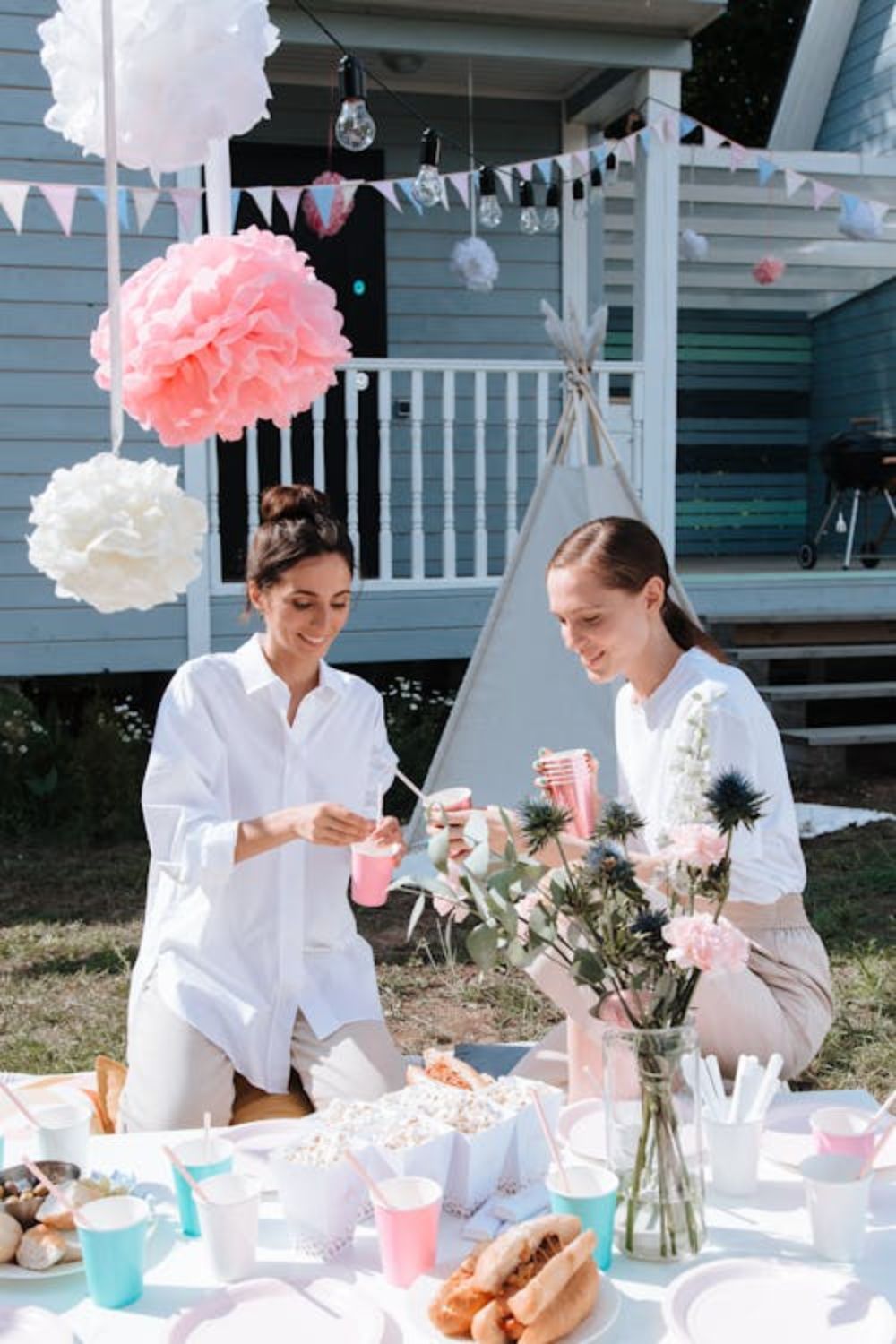 One year, I literally used old jam jars and tied ribbons around them—it looked so charming that everyone thought it was planned. If you’re doing this, don’t overthink it. Add a few floral napkins or plates if you have them, but even plain dishes work. In my opinion, the flowers do all the heavy lifting here, so just let them shine and keep everything else simple.