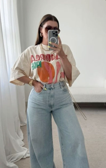 I usually pick a well-fitted t-shirt (not too oversized) and pair it with high-waisted wide-leg pants. Tuck it in slightly, add a belt, and maybe some minimal accessories. It’s one of those outfits where you can sit, move, eat, and just enjoy the day without worrying about anything.