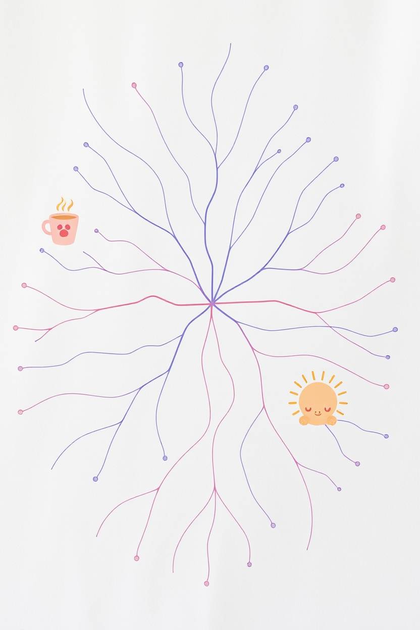 I tried this after a gratitude journaling workshop. Instead of writing a list, I drew a web—each node representing something I was thankful for: coffee, my messy dog, a good nap. Then I connected them with lines and filled the spaces with soft colors.