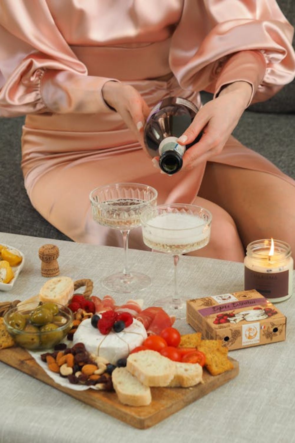 Set up a mini drink station with fruit garnishes, herbs, and cute glassware. Add a sparkling water bar for non-drinkers. I’ve found that the key to keeping it lighthearted is to focus on presentation—sugar-rimmed glasses, metallic straws, and maybe even a signature “house drink.” By midnight, everyone will be sipping and laughing, a little dizzy from both bubbles and happiness.