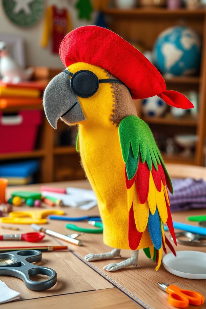 No pirate is complete without a parrot sidekick! This cute puppet is colorful, fun to make, and great for storytelling. It helps toddlers learn about animals while playing pirate.