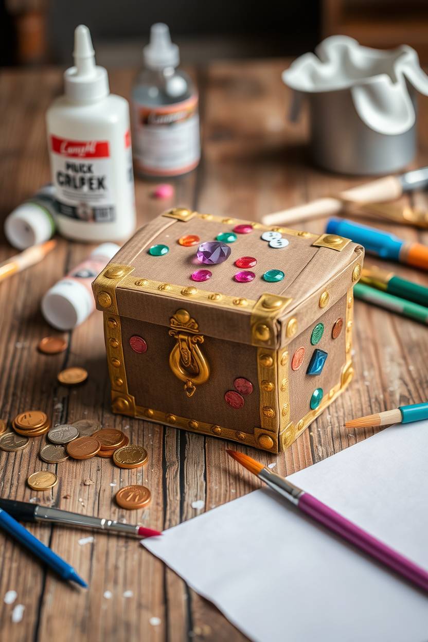 Turn a small box into a glittering treasure chest filled with imagination. This craft lets toddlers explore textures, colors, and shapes while “hiding” their own treasures. It’s a perfect addition to pretend pirate games.