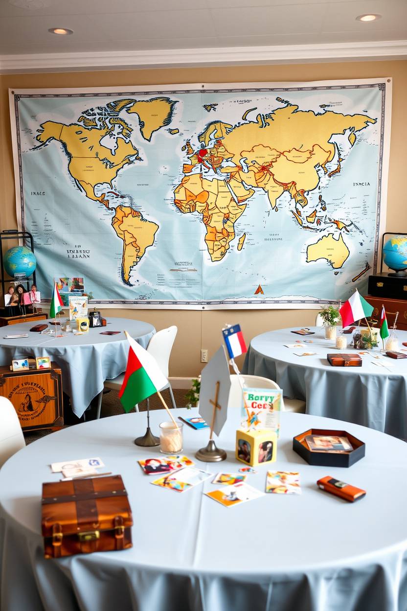 I’ve always thought retirement is the perfect time to scratch that travel itch, so why not bring the world into the party? A travel-themed bash can feel like a mini vacation without even leaving your city. I once attended one where each table was decorated as a different country—Italy had wine bottles and pasta jars, France had Eiffel Tower cutouts, and India had bright fabrics draped everywhere. Honestly, it felt like I had taken a trip across the globe in just one evening.