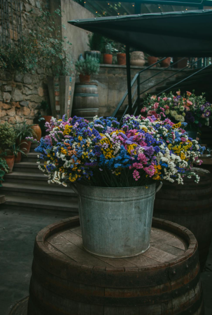 What I usually do is fill the bucket with a mix of flowers like tulips, daisies, and greenery to make it look full and natural. Sometimes I add a small glass jar inside the bucket to hold water for the flowers. I’ve found that these buckets work really well as porch decor or table centerpieces. In my opinion, the slightly worn metal look pairs perfectly with colorful spring flowers, creating that rustic charm that feels simple but beautiful.