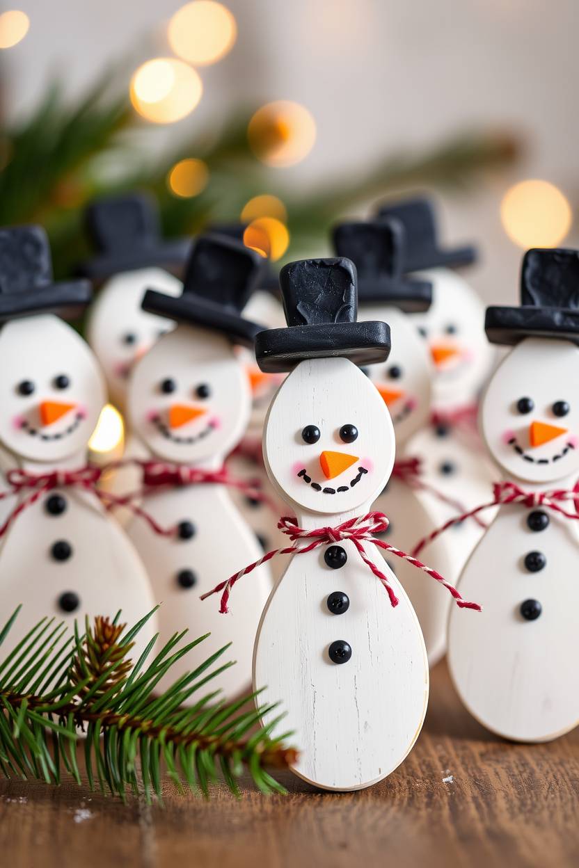 This one sounds weird at first, but hear me out—wooden spoon snowmen are adorable. I had a leftover pack from a picnic and turned them into snowman puppets just for fun. A bit of white paint, some marker details, and scraps of fabric, and boom—you’ve got yourself a winter cutie.