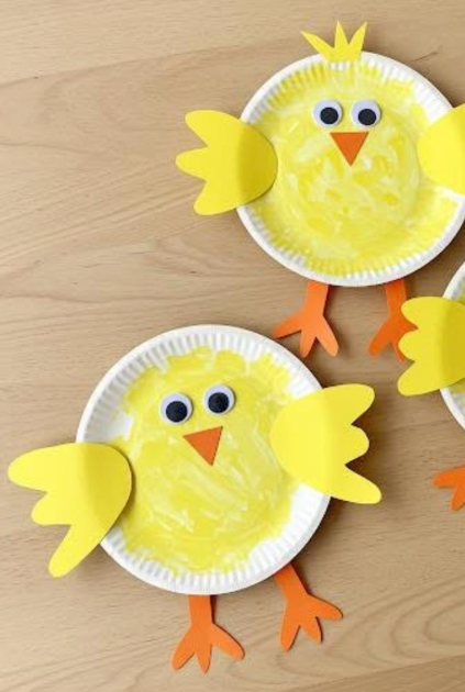 Honestly, this one is always my go-to when spring first starts. There’s just something about turning a simple paper plate into a fluffy little chick that makes toddlers light up. I usually grab yellow paint, googly eyes, and orange paper for the beak and feet. Don’t stress about perfection — in fact, the messier it is, the cuter it looks. I’ve found that letting toddlers spread the paint with big brushes (or even their hands!) makes it way more fun for them.