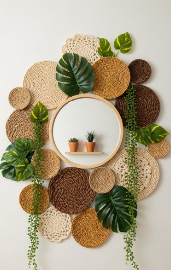 If you want to do this yourself, choose baskets in different sizes and patterns. I’ve found that mixing light natural tones works best for that breezy look. Lay them out on the floor first to figure out your arrangement before hanging them. In my opinion, this kind of decor works beautifully in living rooms, hallways, or even bedrooms. It adds personality without feeling too heavy or formal.