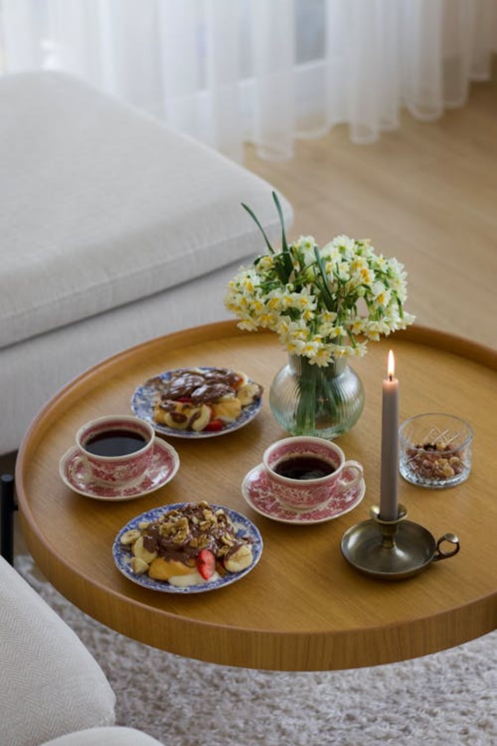 I usually keep it simple—a tray, a small plant, and maybe a candle or two. Too many items make it feel cluttered, which I’ve definitely done before.