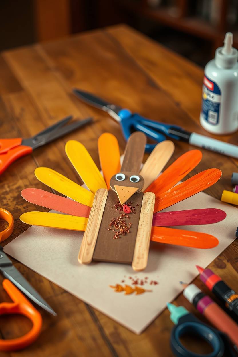 Honestly, popsicle stick turkeys are a classic that I’ve grown fond of over the years. I usually glue a few sticks side by side for the body, then attach cut-out paper feathers behind them. I’ve found painting the sticks first makes everything look more polished. It’s fun because you can make the turkey as silly or realistic as you want.