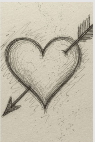 What I like to do is add small wings to the arrow or tiny sparkles around it. I’ve found that curved lines make the drawing feel more dynamic. To be fair, this idea works great even as a quick sketch. It’s simple, symbolic, and instantly recognizable as a Valentine theme.