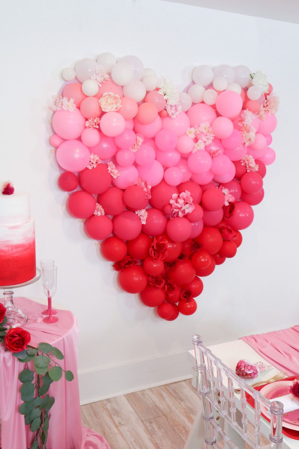 Honestly, this one never fails. I’ve used balloon arches so many times for Valentine setups, and every single time people walk in and go, “Wow.” In my opinion, a romantic balloon arch works best when you stick to soft reds, blush pinks, and a few pearl or metallic balloons mixed in. I usually suggest keeping the arch slightly uneven—perfectly symmetrical arches can feel a bit too stiff for Valentine’s Day.